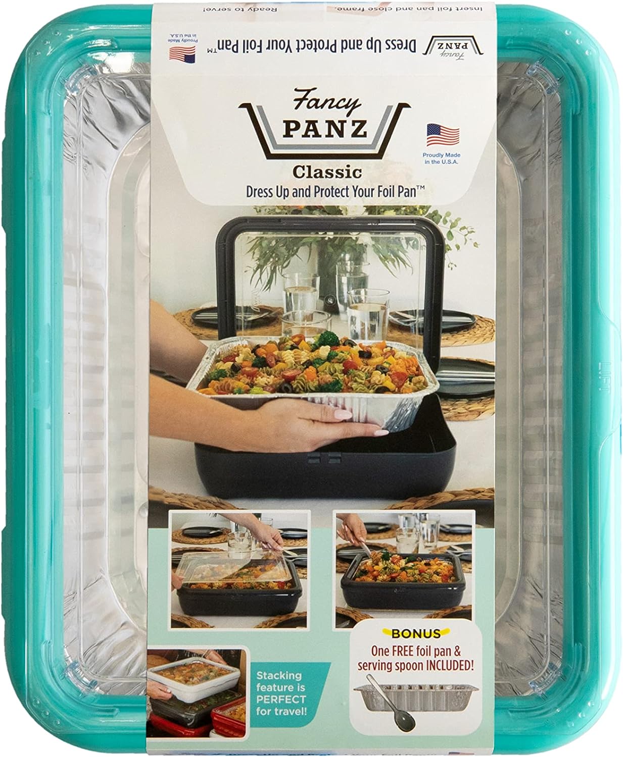 - TWO WAYS TO SERVE FROM FANCY PANZ: Remove the clear top and place under your Fancy Panz where it acts as a trivet OR leave the clear top on and lift from the tab to help maintain food temperature and keep pesky criters out! stackable and perfect for travel. No more concerns over spilling the food during transport. Ready to leave? Simply remove the foil pan from your Fancy Panz for party-goers to continue enjoying while you take your Fancy Panz home